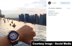 Инстаграммда Матраимовдун 14 жаштагы уулунун сүрөтү бар. Анын кол сааты швейцариялык Hublot компаниясыныкына окшош. Сүрөт сингапурдук Marina Bay Sands мейманканасынын инфинити-бассейнинин фонунда тартылган.